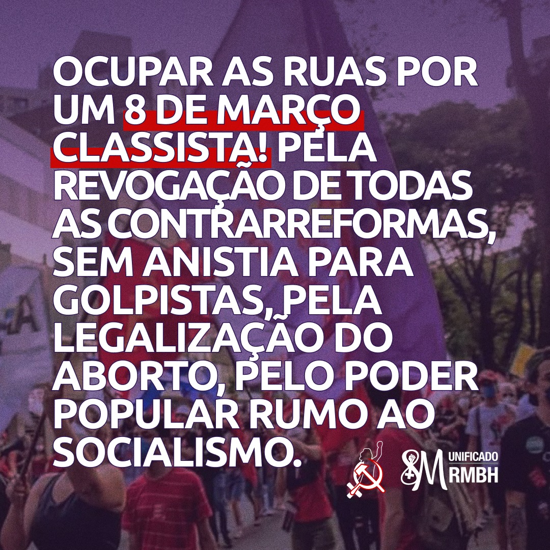 OCUPAR AS RUAS POR UM 8 DE MARÇO CLASSISTA! PELA REVOGAÇÃO DE TODAS AS CONTRARREFORMAS, SEM ANISTIA PARA GOLPISTAS, PELA LEGALIZAÇÃO DO ABORTO, PELO PODER POPULAR RUMO AO SOCIALISMO.